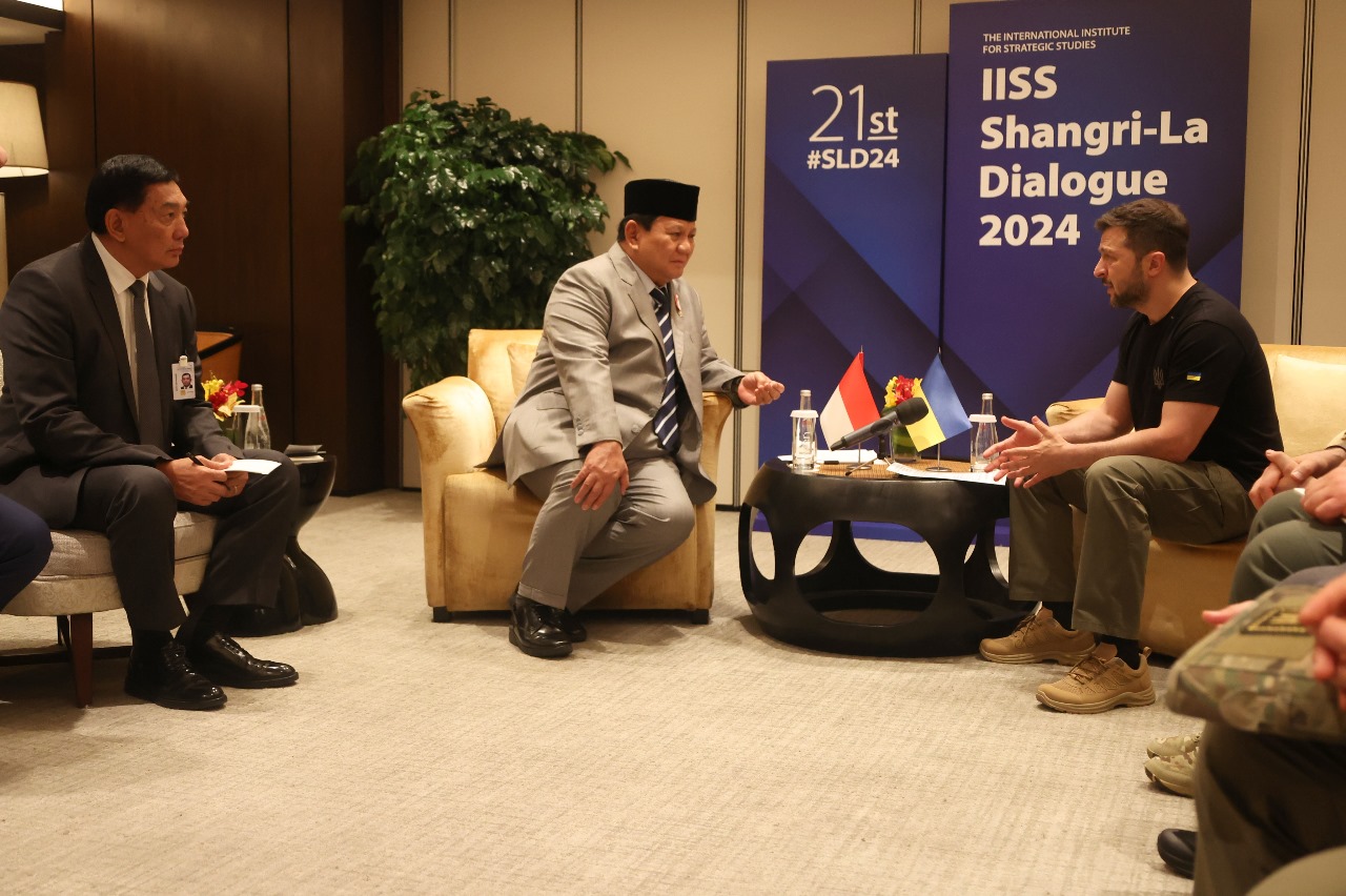 Singapura – Matafaktanews.com. Mengakhiri pertemuan bilateral di Singapura, Menhan RI Prabowo Subianto bertemu dengan Presiden Ukraina H.E. Volodymyr Zelenskyy, di Singapura, Sabtu (1/6/2024). Pertemuan kedua negara bertujuan untuk meningkatkan kerja sama pertahanan dan mengatasi isu global yang mendesak.