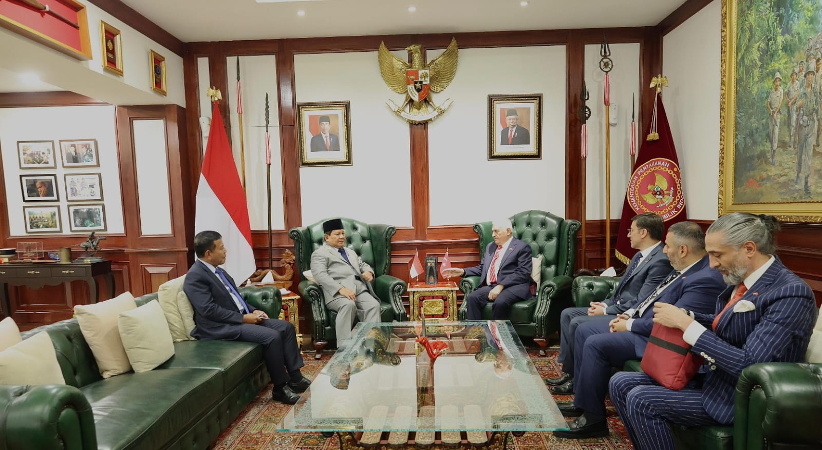 Jakarta – Matafaktanews.com. Menteri Pertahanan Republik Indonesia Prabowo Subianto menerima kunjungan kehormatan Former Prime Minister of Türkiye / Mantan Perdana Menteri Turki (2016-2018), H. E. Mr. Binali Yildirim yang didampingi Duta Besar Republik Turki untuk Indonesia H. E. Mr. Talip Küçükcan, di kantor Kementerian Pertahanan, Jakarta, Kamis (6/6/2024).