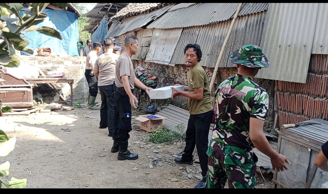 Kapolsek Ciwaringin AKP Baban Kurbandi bersama anggota polsek Ciwaringin, koramil Ciwaringin, pemdes Galagamba serta masyarakat melaksanakan kerja bakti bedah rumah rutilahu milik Jenab Blok 4 Desa Galagamba Kecamatan Ciwaringin.
