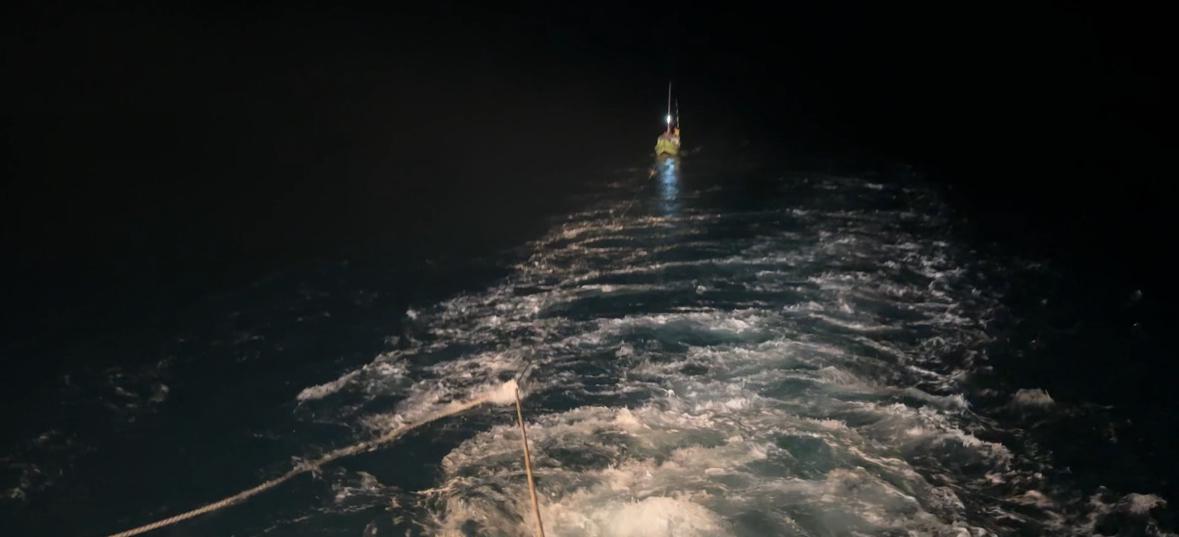 Selama proses towing, personel KN Tanjung Datu-301 ditempatkan di buritan kapal untuk melakukan pengawasan langsung dan berkomunikasi dengan personel KN Tanjung Datu-301 yang berada di kapal nelayan jika terjadi kendala. Kapal nelayan yang ditowing oleh KN Tanjung Datu-301 ini membawa tiga personel KN Tanjung Datu-301 dan dilengkapi dengan tiga unit sarana komunikasi HT.