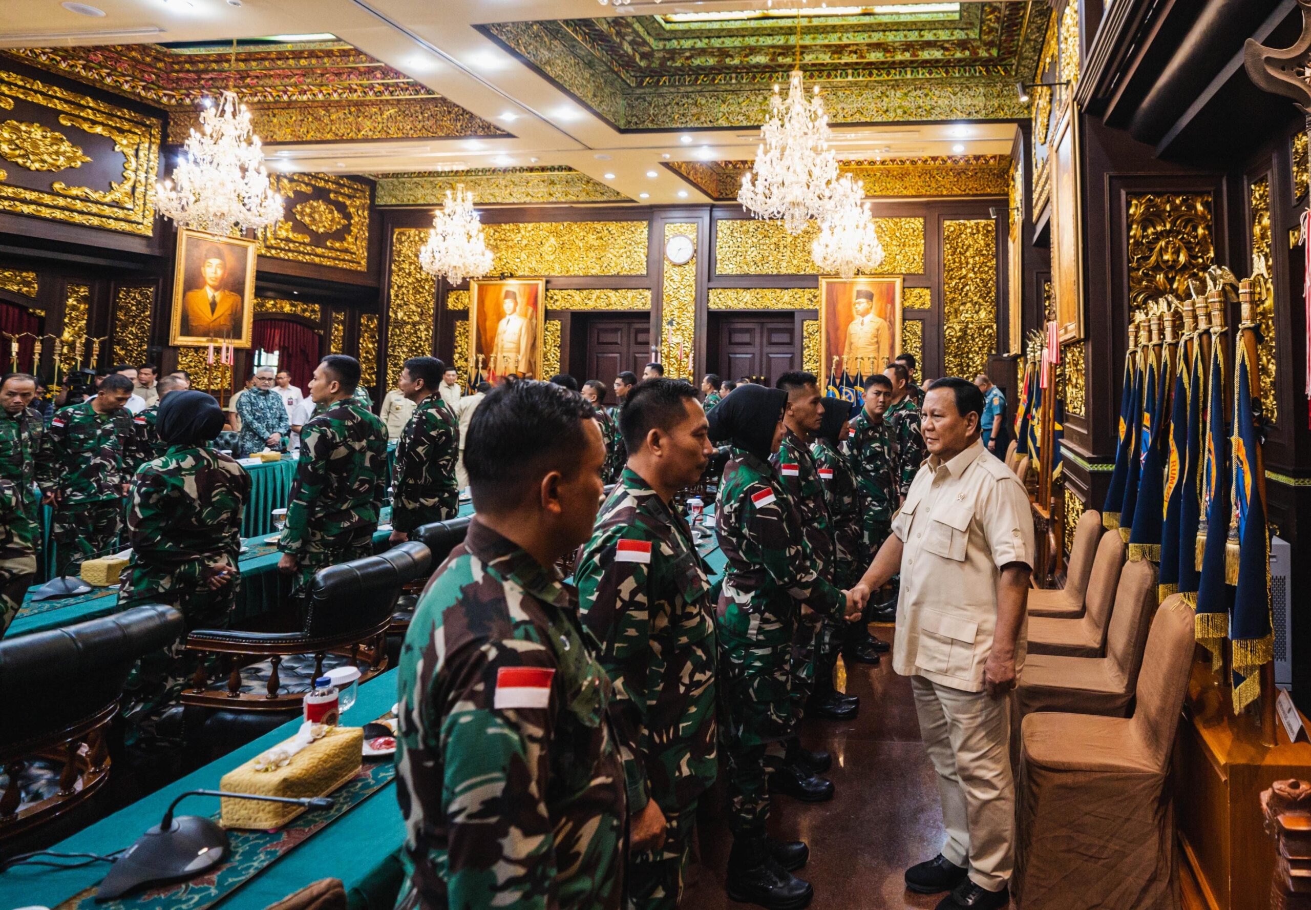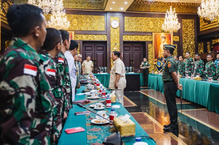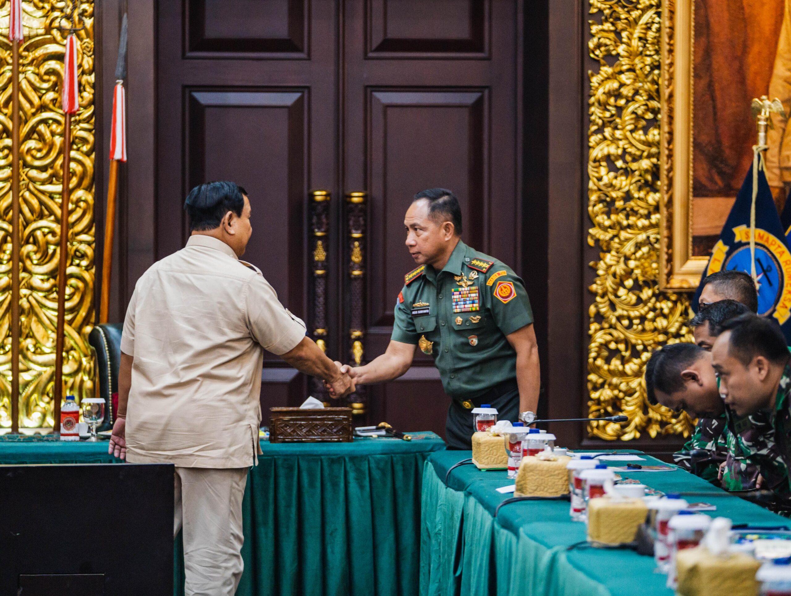 Jakarta – Matafaktanews.com. Panglima TNI Jenderal TNI Agus Subiyanto mendampingi Menteri Pertahanan RI Prabowo Subianto memberikan pembekalan kepada 40 personel tenaga kesehatan (Nakes) TNI yang akan menjalan misi kemanusiaan di Gaza, bertempat di Ruang Bhinneka Tunggal Ika (BTI), Kantor Kementerian Pertahanan RI, Jakarta Pusat, Rabu (7/8/2024).
