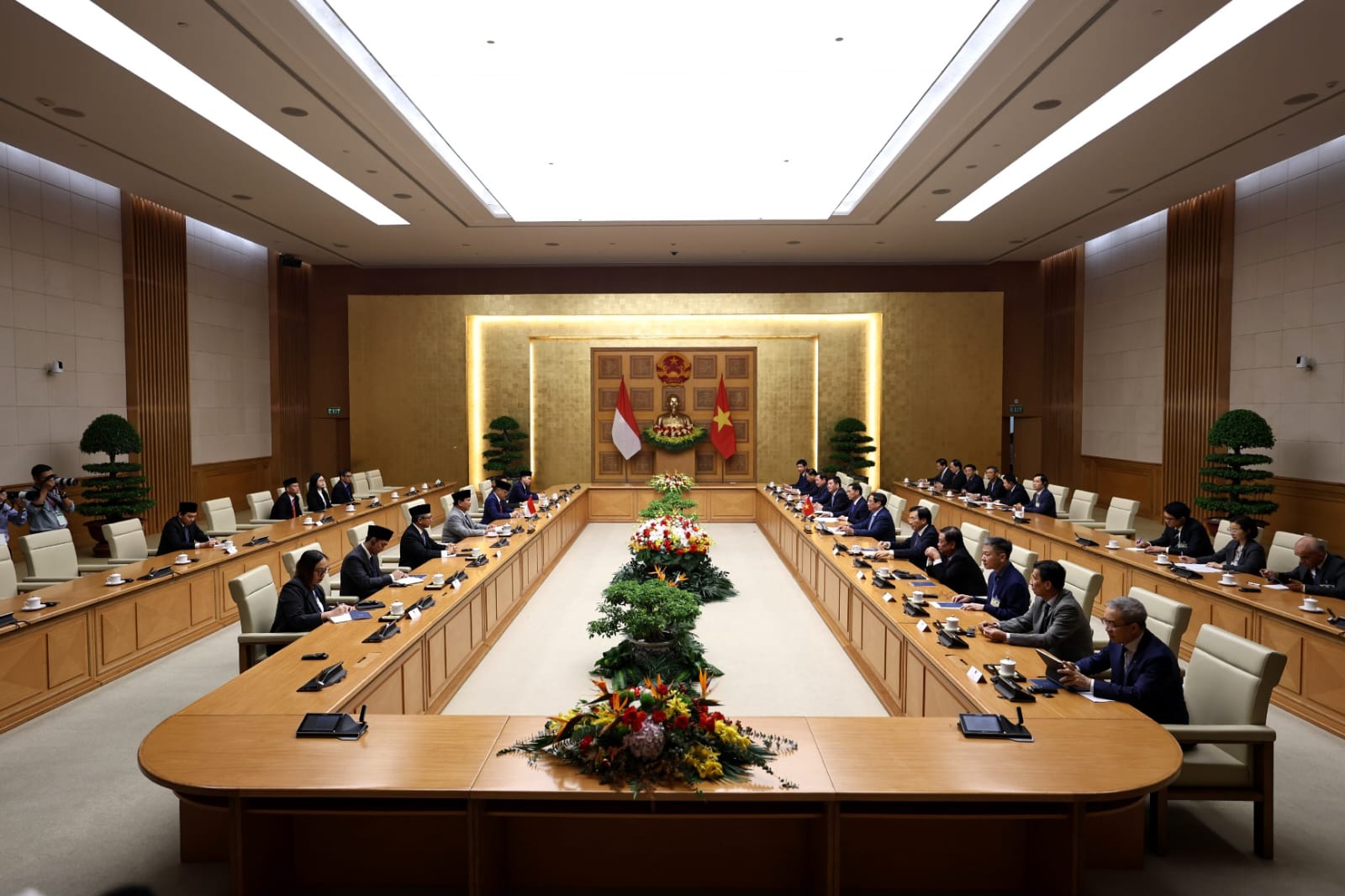 Vietnam – Di akhir kunjungan kerja ke Vietnam, Menteri Pertahanan RI Prabowo Subianto melakukan pertemuan dengan Perdana Menteri Vietnam H.E. Pham Minh Chinh, di Vietnam, pada Sabtu (14/9/2024).