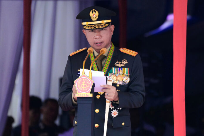 Jakarta – Matafaktanews.com. Panglima TNI Jenderal TNI Agus Subiyanto pimpin Upacara HUT Ke-79 TNI AL dengan tema “Dengan Semangat Jalesveva Jayamahe TNI AL Siap Mewujudkan Nusantara Baru Indonesia Maju” yang digelar di atas Geladak Heli KRI dr. Radjiman Wedyodiningrat-992 yang berlayar di Teluk Jakarta. Selasa (10/9/2024).