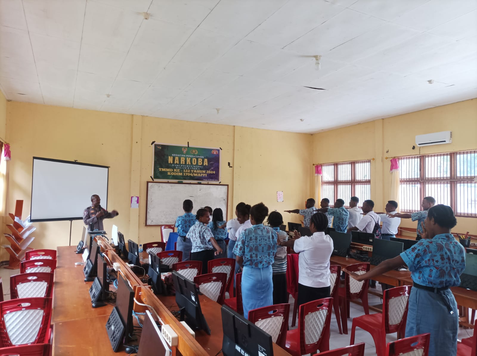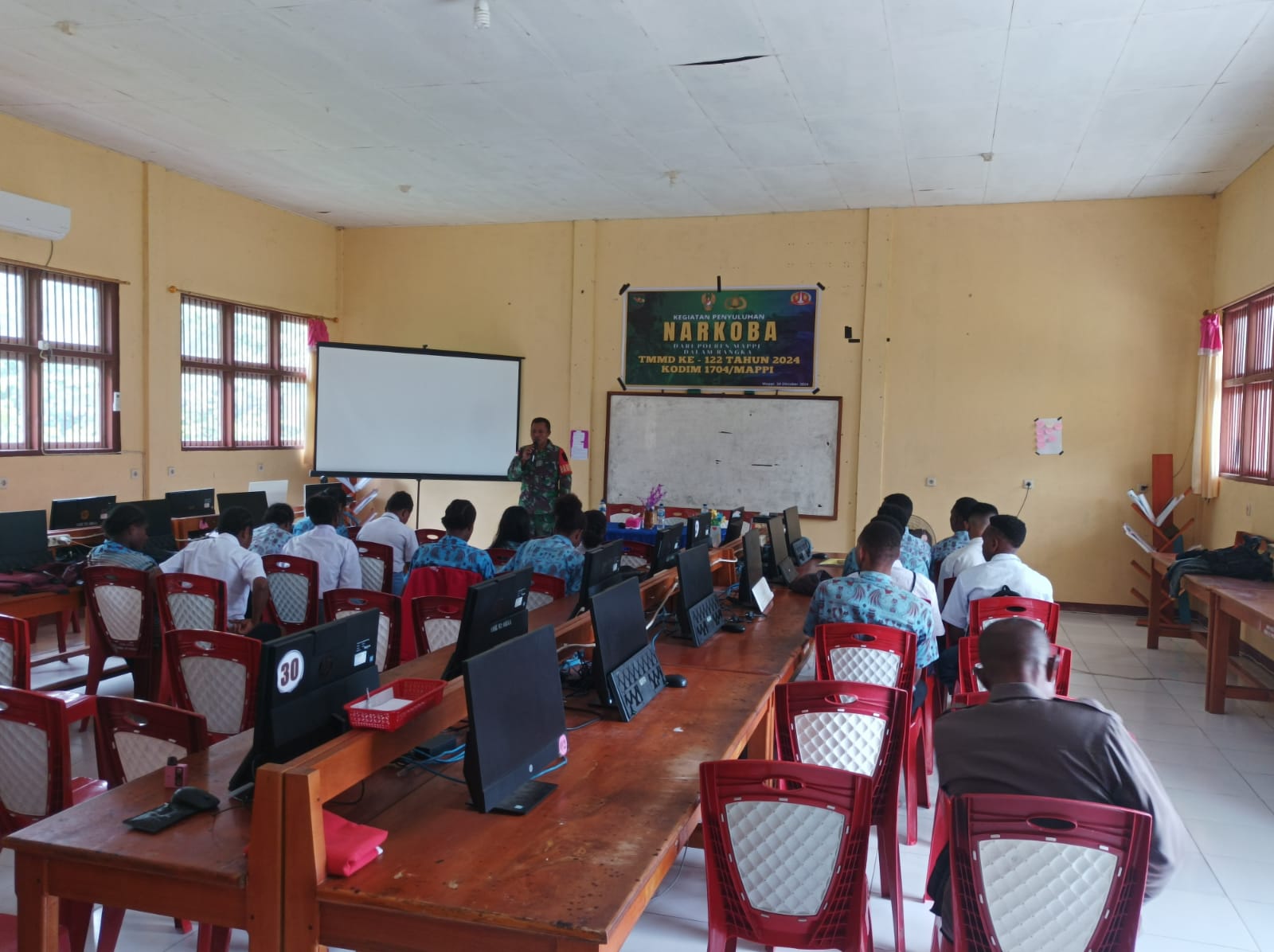 Mappi – Matafaktanews.com. Bentuk sinergitas antara TNI dan Polri, Polres Mappi melalui Kasat Binmas Polres Mappi Iptu Naftali Rumpaidus melaksanakan kegiatan penyuluhan Narkoba terhadap siswa-siswi SMK Negeri 2 Obaa, Distrik Obaa, Kabupaten Mappi, Papua Selatan, Kamis (24/10/2024). Kegiatan ini dilaksanakan dalam rangka program non fisik yang dilakukan Satgas TMMD Ke-122 Kodim 1704/Mappi.