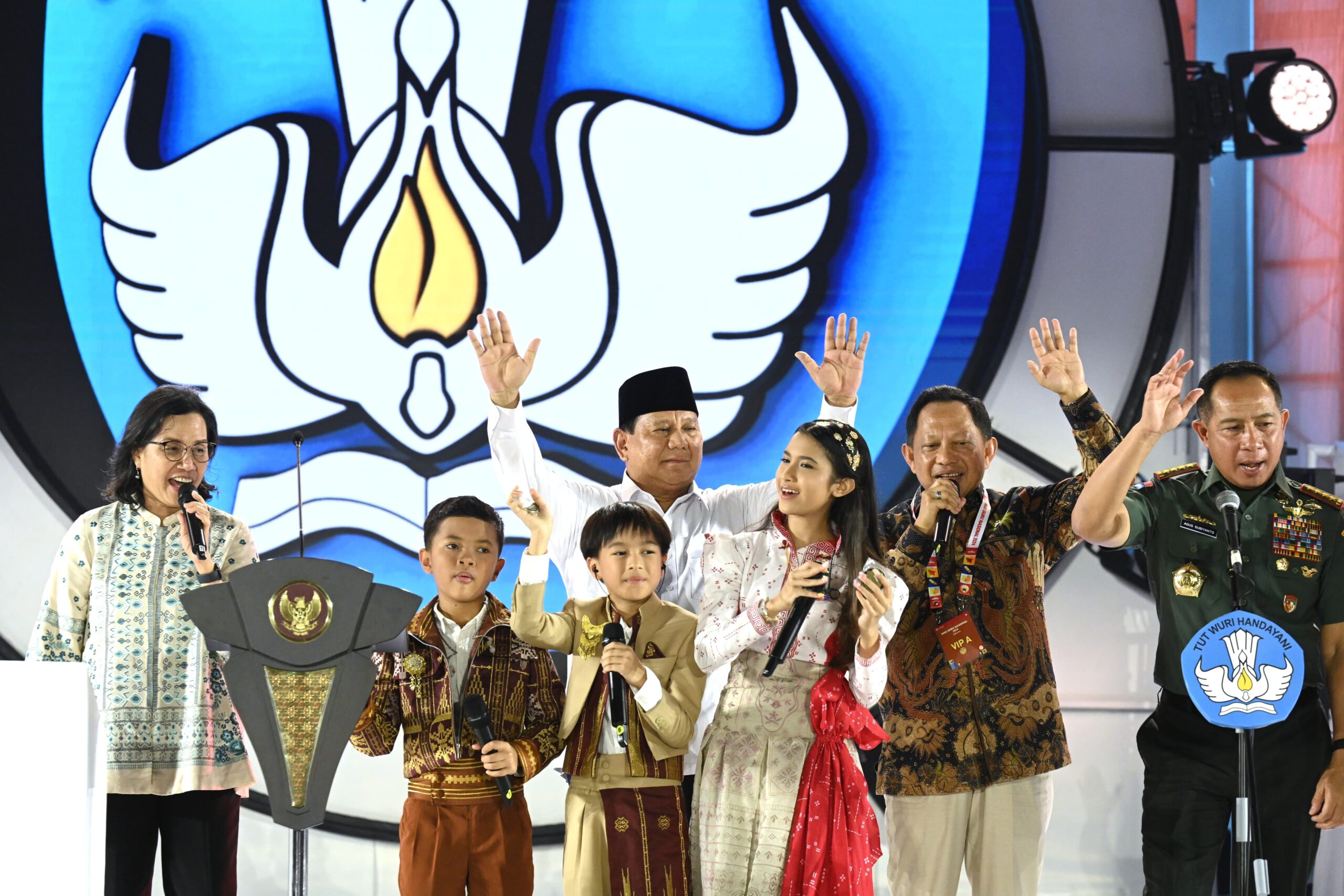 Hadir dalam acara tersebut diantaranya Menteri Kabinet Merah Putih, Kapolri, serta ribuan Guru dari berbagai daerah yang turut memeriahkan acara ini.
