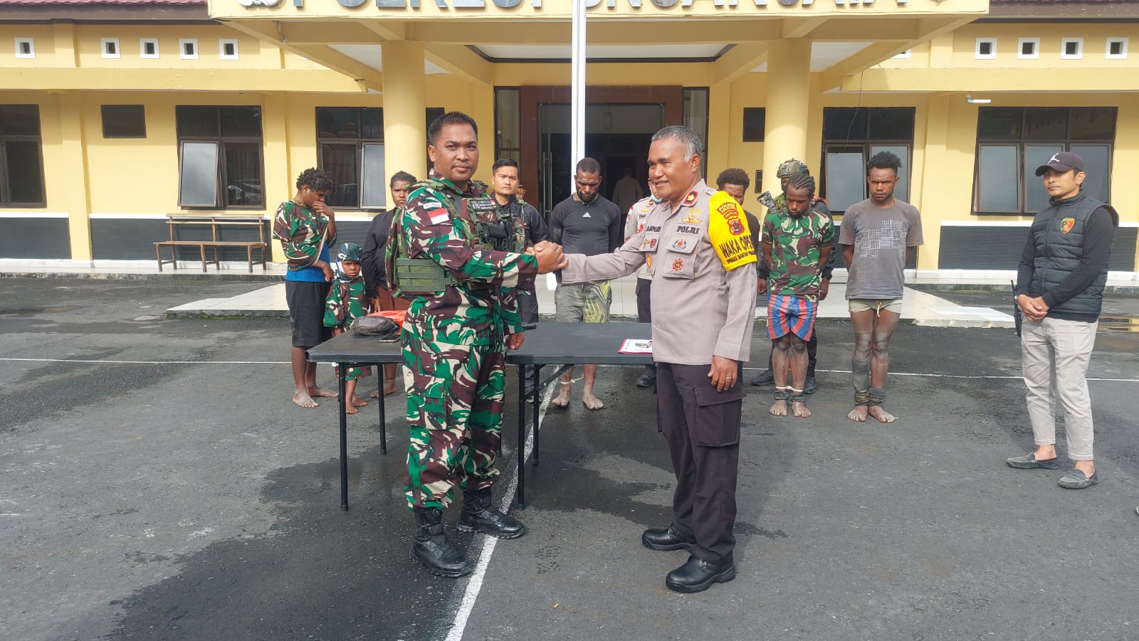 Sementara itu, Kapolres Puncak Jaya AKBP Kuswara menyampaikan ucapan terima kasih karena Satgas Pamtas Kewilayahan Yonif 715/Motuliato telah berhasil menangkap tersangka pembunuhan yang sudah menjadi buronan. “Dari kejadian ini, TNI dan Polri harus terus bersinergi, khususnya di daerah rawan demi menciptakan rasa aman bagi masyarakat,” katanya.