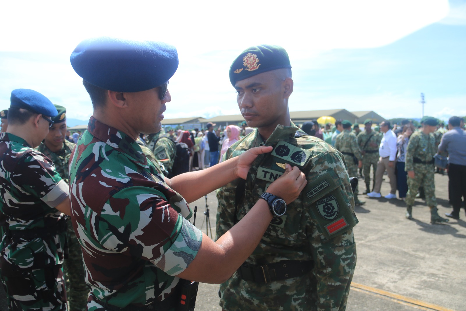 Makassar – Matafaktanews.com. Kepala Dinas Operasi (Kadisops) Lanud Sultan Hasanuddin, Kolonel Pnb Ari Susiono, S.E., mewakili Komandan Lanud Sultan Hasanuddin, Marsma TNI Bonang Bayuaji G., S.E., M.M., CHRMP., menyematkan Bravet Para Dasar kepada prajurit Brigif 3/Tri Budi Sakti Divisi Infanteri 3 Kostrad pada acara Wingday, bertempat di Apron Galaktika Lanud Sultan Hasanuddin, Maros, Senin (2/12/2024).