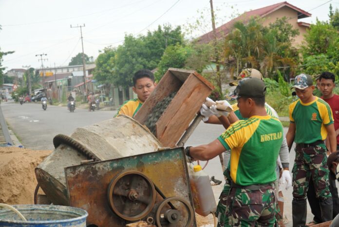 Kebersamaan Satgas Pamtas Yonarmed 11 Kostrad dan Warga Dalam Pembangunan Masjid di Perbatasan