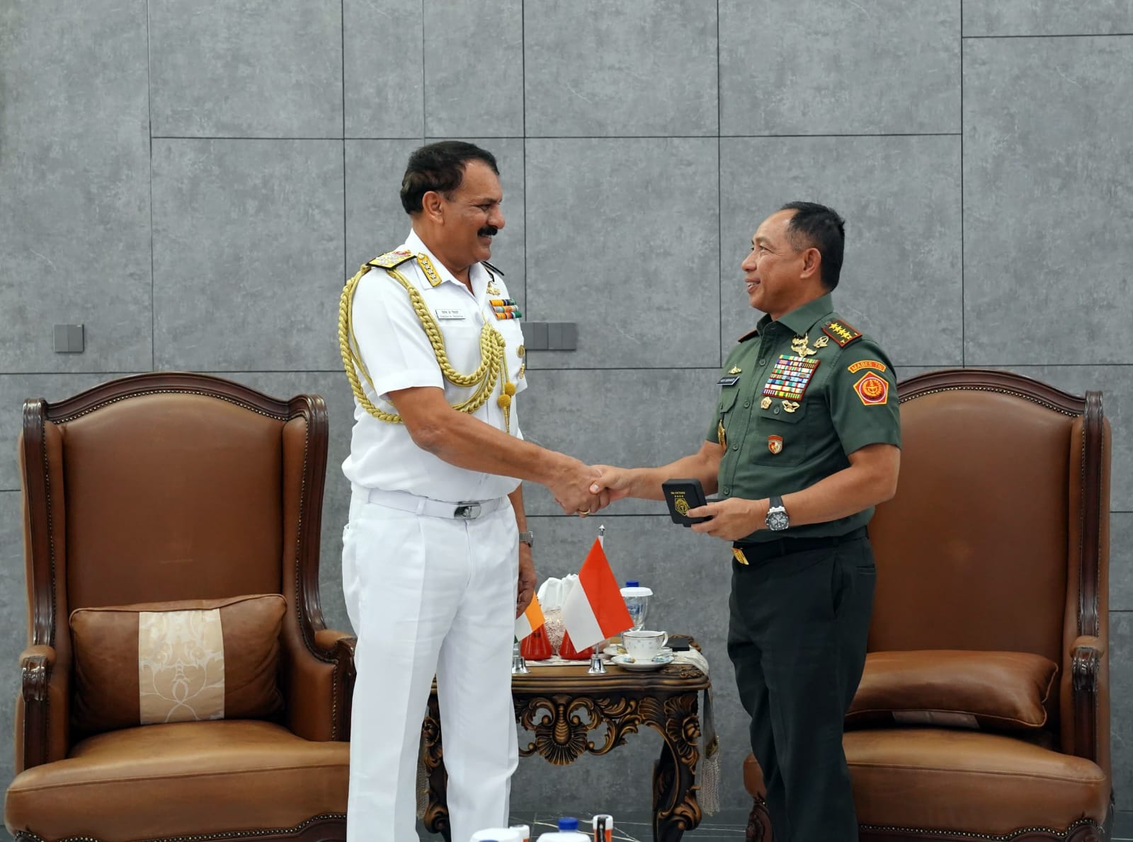 Jakarta – Matafaktanews.com. Panglima TNI Jenderal TNI Agus Subiyanto menerima Kunjungan Kehormatan Kepala Staf Angkatan Laut (Kasal) India Laksamana Dinesh Kumar Tripathi, PSVM., AVSM., NM., bertempat di Kantor Subden Merdeka Barat, Jakarta Pusat. Senin (16/12/2024).