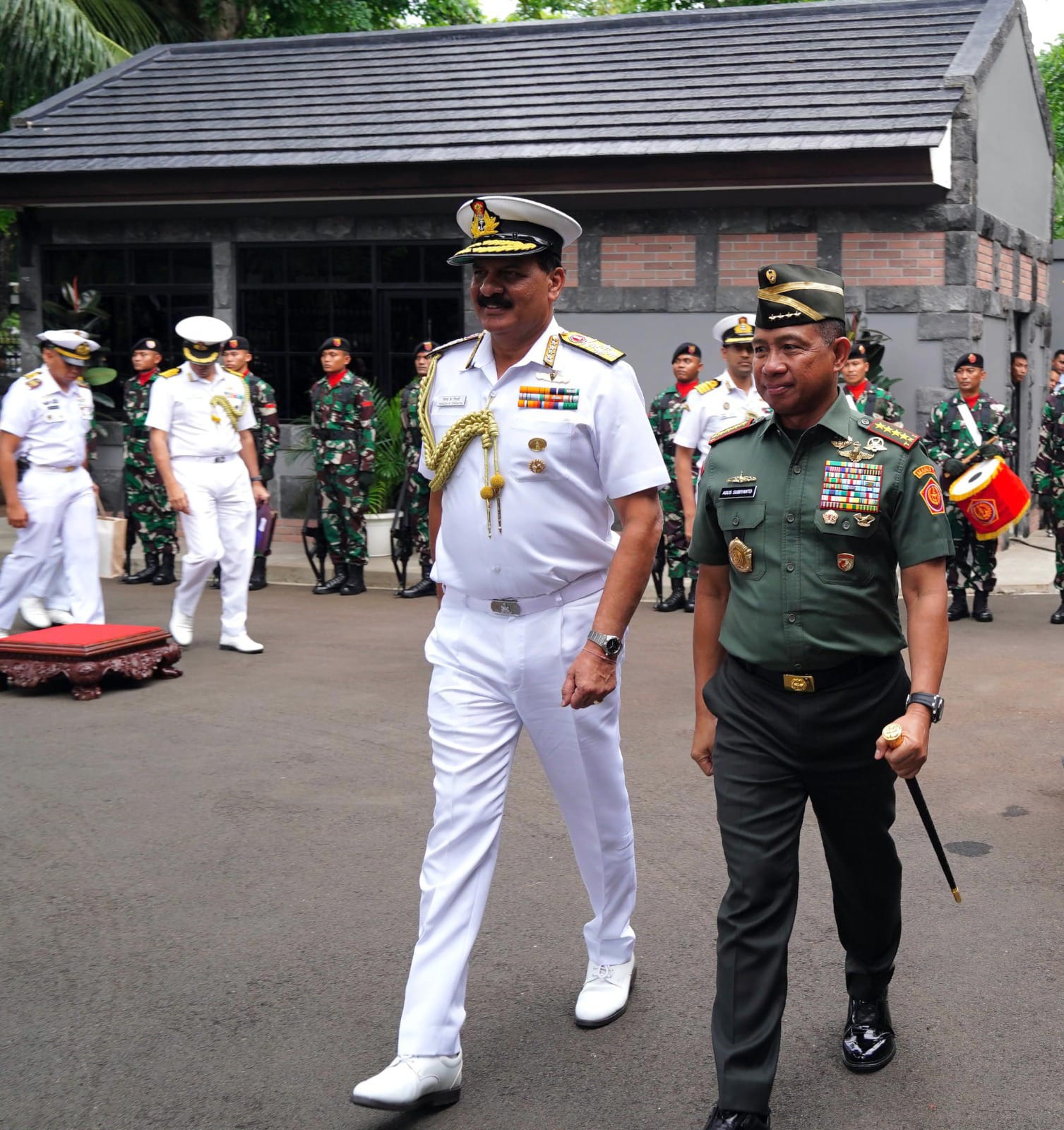 Kunjungan kehormatan orang nomor satu di Angkatan Laut India yang diawali dengan upacara Jajar Kehormatan dan pemeriksaan pasukan ini berlangsung cukup hangat. Dalam kesempatan tersebut, Laksamana Kumar mengapresiasi beberapa latihan militer bersama berskala multinasional yang diselenggarakan oleh TNI di antaranya seperti Multilateral Naval Exercise (MNEX) dan Latgabma Super Garuda Shield.