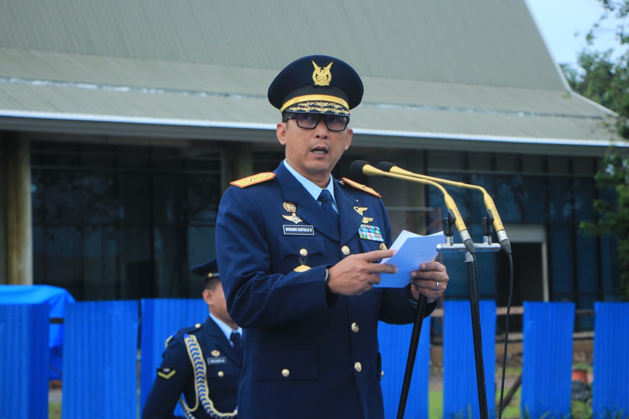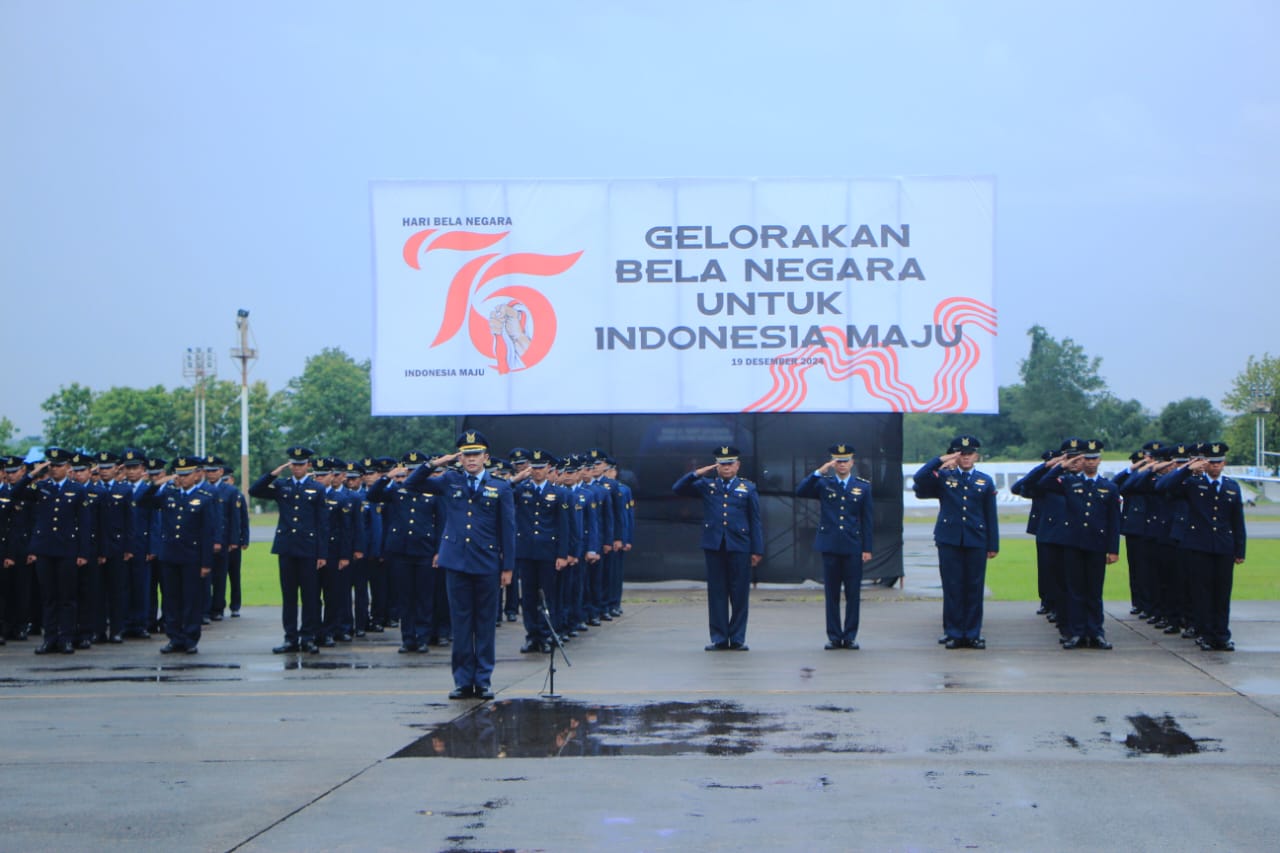 Makassar – Matafaktanews.com. Komandan Lanud (Danlanud) Sultan Hasanuddin Marsma TNI Bonang Bayuaji G, S.E., M.M., CHRMP., memimpin upacara peringatan Hari Bela Negara ke-76 tahun 2024 di jajaran Lanud Sultan Hasanuddin yang digelar di Apron Galaktika Lanud Sultan Hasanuddin, Maros, Kamis (19/12/2024).