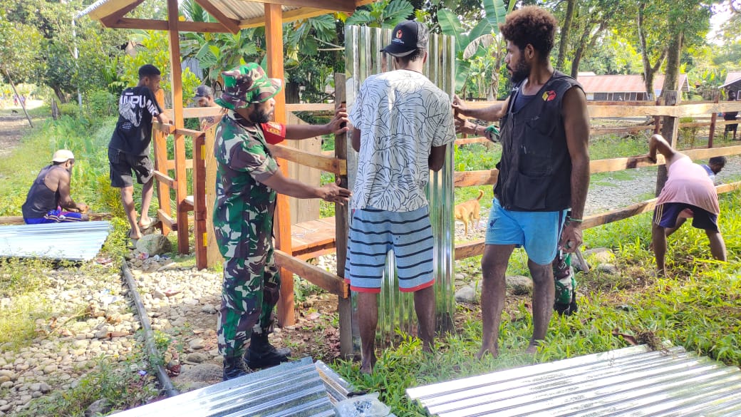 Menakjubkan Sinergi TNI dan Warga, Bangun Pagar Gereja di Kampung Soi