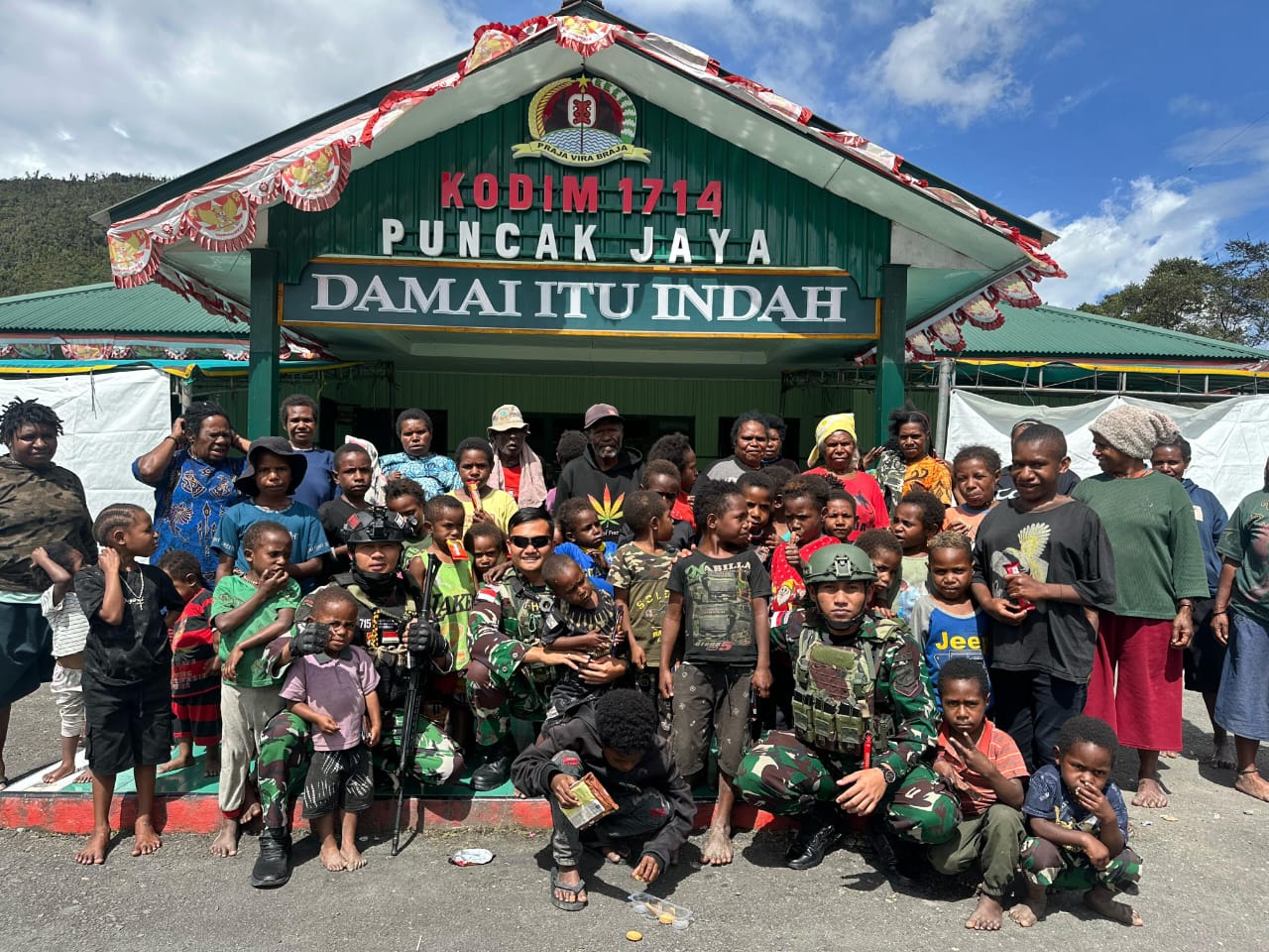 Sementara itu, Mama Ani Enumbi (34) wa..wa..wa.. terimakasih Bapak Bapak dari 715 sudah peduli dan memberikan penghiburan kepada kami semoga Bapak semua selalu dalam lindungan Tuhan disaat menjalankan Tugas.