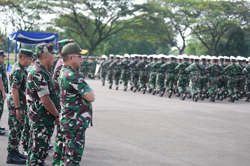 Pada kesempatan tersebut, Panglima TNI bersama Menhan RI berkomunikasi langsung dengan para pasukan dan mengecek perlengkapan serta kesiapan pakaian yang akan digunakan.