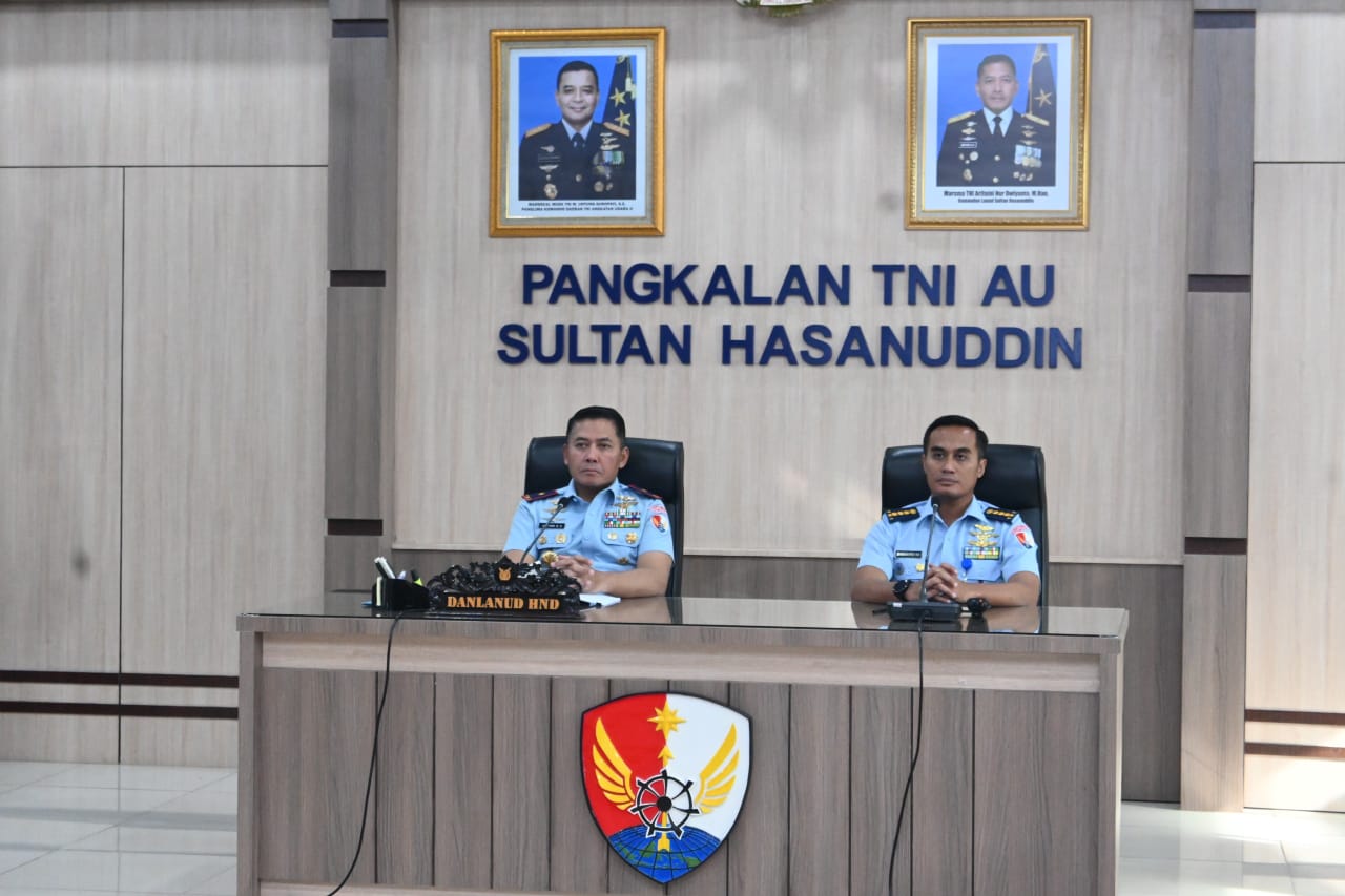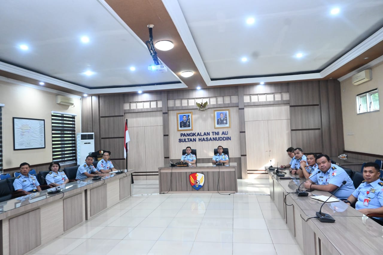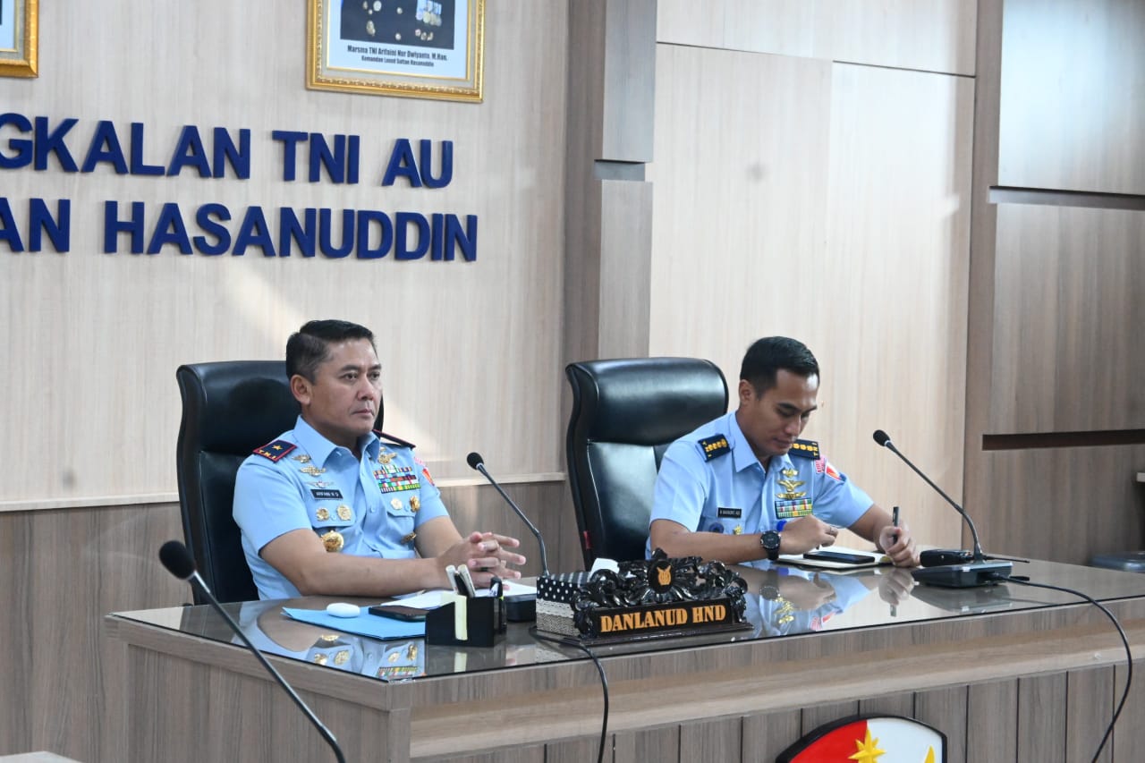 Makassar – Matafaktanews.com. Danlanud Sultan Hasanuddin Marsma TNI Arifaini Nur Dwiyanto, M.Han., didampingi para pejabat Lanud Sultan Hasanuddin mengikuti Rapat Kerja Teknis (Rakernis) Komando Daerah TNI Angkatan Udara II (Kodau II) secara virtual di Ruang Rapat Mako Lanud Sultan Hasanuddin, Senin (23/2/2026).