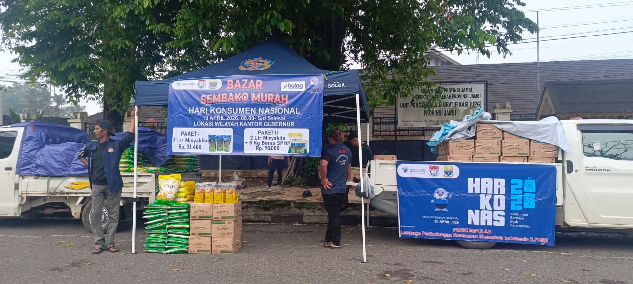 Jambi – Matafaktanews.com. Dalam rangka memperingati Hari Konsumen Nasional Pemprov Jambi, Bulog Wilayah Jambi dan Lembaga Perlindungan Konsumen Nusantara Indonesia (LPKNI) mengadakan Bazar Sembako Murah di depan Kantor Gubernur Jambi.