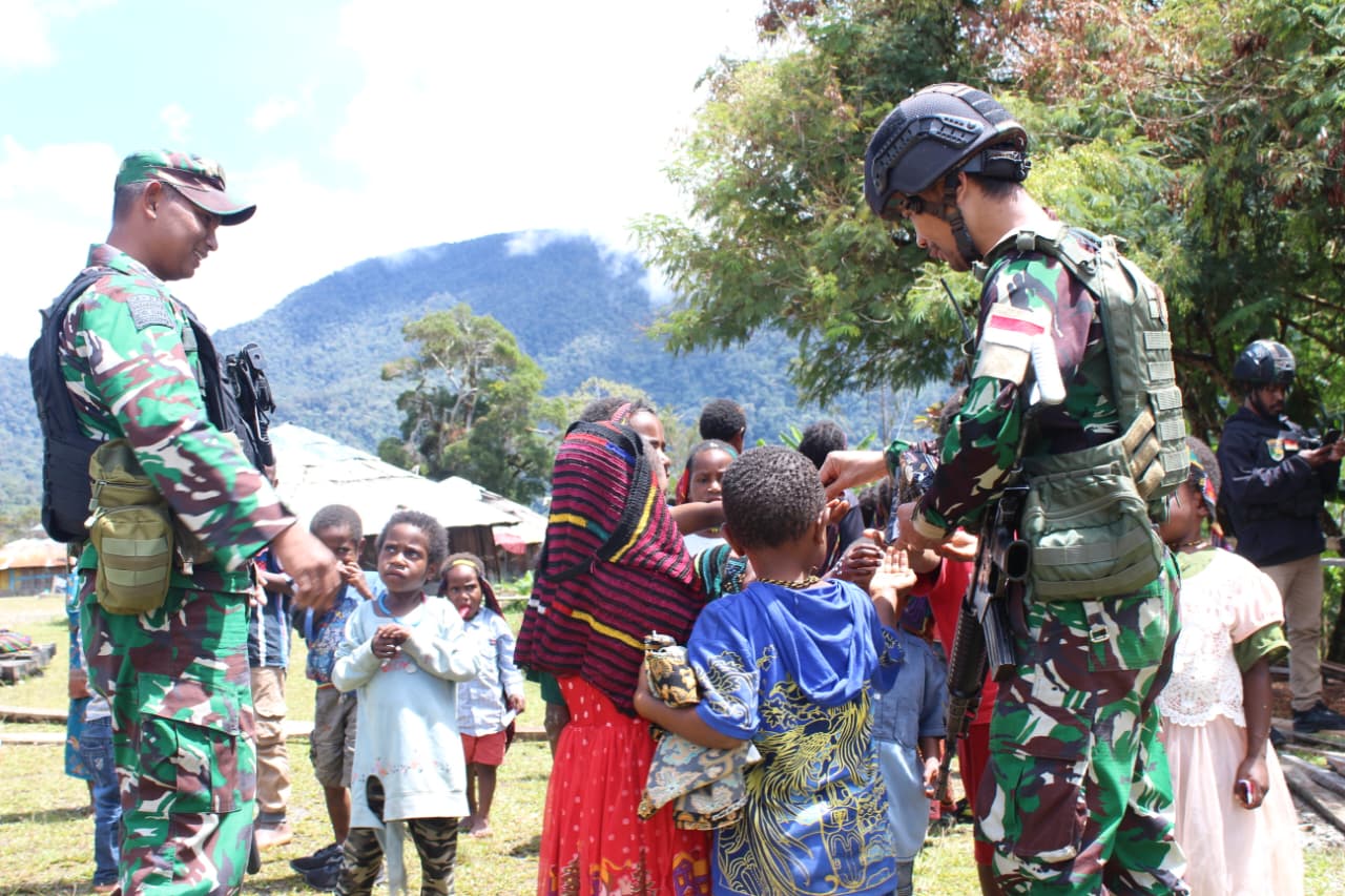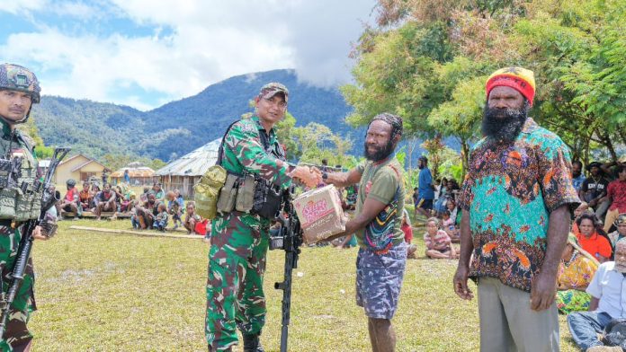 Kodim 1714/Puncak Jaya Peduli Pengungsi dan Salurkan Bantuan Kemanusiaan di Kampung Tirineri