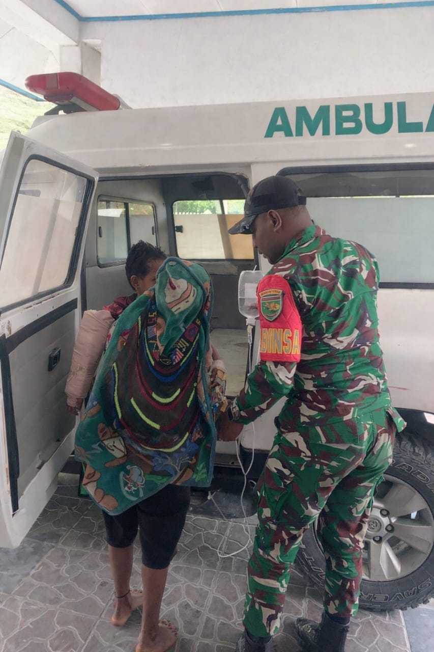 Koramil 1714-01/Mulia Menjadi Pelindung Rakyat Dampingi Evakuasi Korban Menuju RSUD Nabire